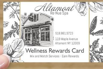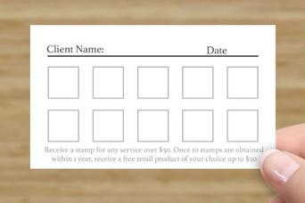 Clients can ask for a wellness rewards card at the front desk. For any service over $50 (massage, facial, color, pedicure, etc), clients will receive a stamp on the reward card. Once 10 stamps have been collected clients can redeem the card for 1 free retail product up to $50.